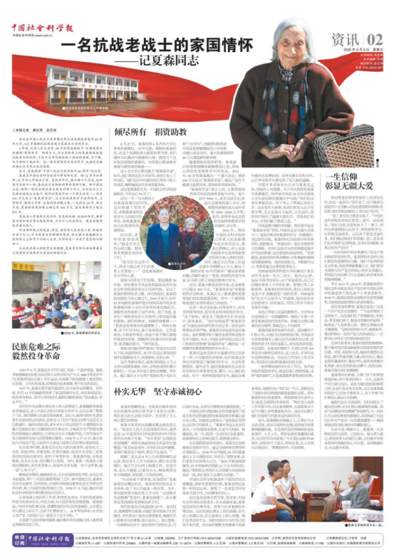 从革命战士到社科工作者,转变的是身份,不变的是夏森始终坚守的革命信念,对党忠诚,对人民怀有的深厚感情。夏森曾说:“我对百姓饥寒交加、惨遭欺凌的旧社会深恶痛绝,立志要让穷人都过上好日子,让孩子们都有学上。14岁参加革命,15岁加入共产党,为的是什么?就是为了这个目标。”