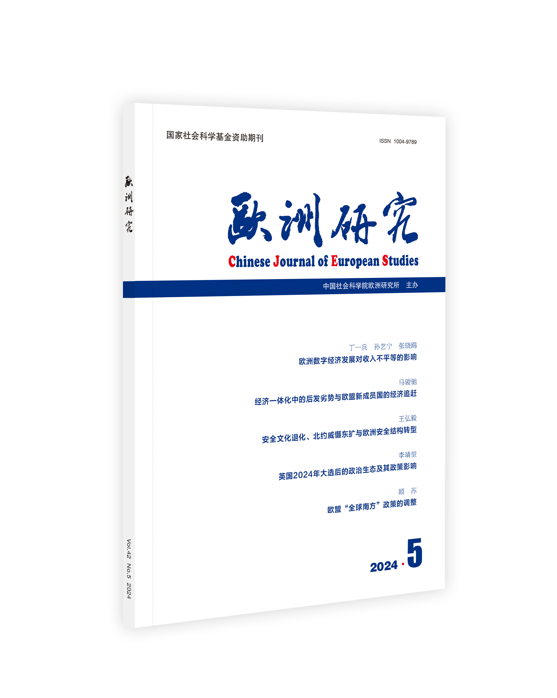 《欧洲研究》2024年第5期 2024-12-04 0 □ 国际政治经济评论 1 欧洲数字经济发展对收入不平等的影响 丁一兵 孙艺宁 张晓鸥 29 经济一体化中的后发劣势与欧盟新成员国的经济追赶——以维谢格拉德四国1820—2018年的经济追赶为例 马骏驰 63 安全文化退化、北约威慑东扩与欧洲安全结构转型——来自中东欧国家的动力 王弘毅 □ 国别与地区 88 英国2024年大选后的政治生态及其政策影响——政治冷漠化、政党格局碎片化与外交“安全化” 李靖堃 115 欧盟“全球南方”政策的调整——基于地区间主义视角的分析 顾 苏