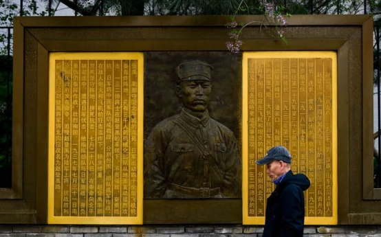 3月26日在北京市西城区赵登禹路,市民从赵登禹将军英雄事迹主题浮雕前走过。新华社记者 刘金海 摄