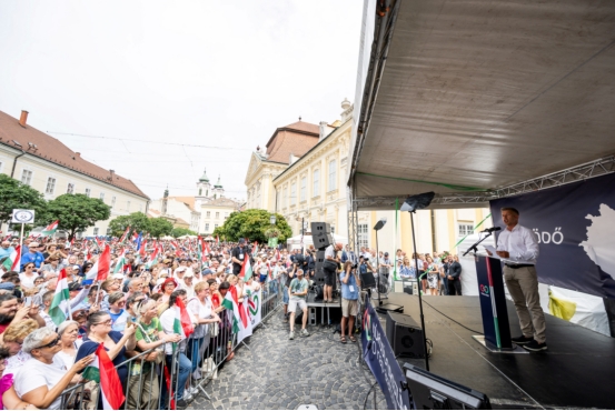 2025年7月26日,匈牙利反对派领袖马扎尔在塞克什白堡发表讲话。