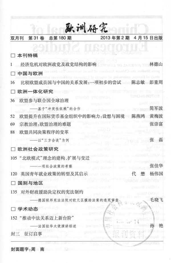 《欧洲研究》2013年第2期出版
