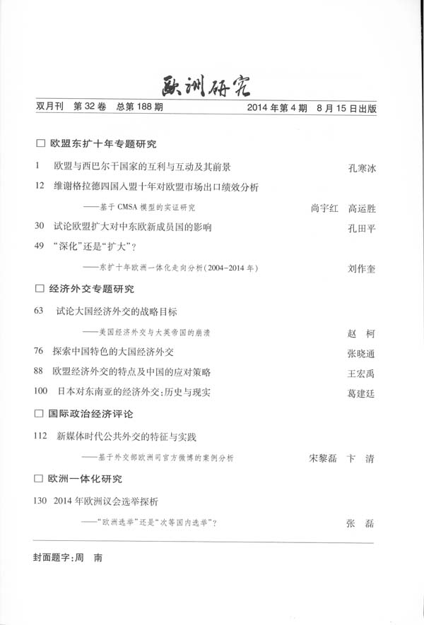 《欧洲研究》2014年第4期出版