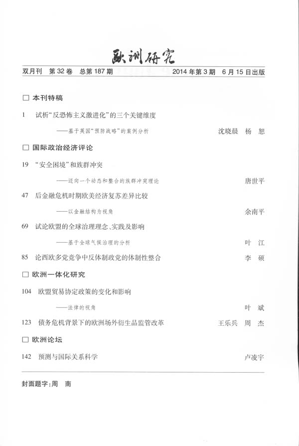 《欧洲研究》2014年第3期出版