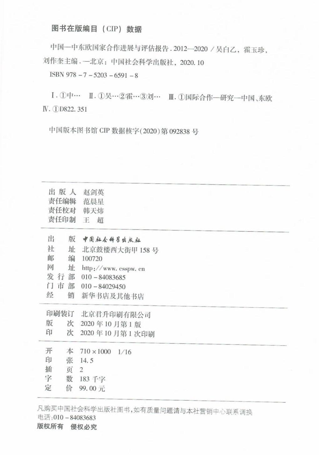 吴白乙、霍玉珍、刘作奎:《中国-中东欧国家合作进展与评估报告(2012-2020)》