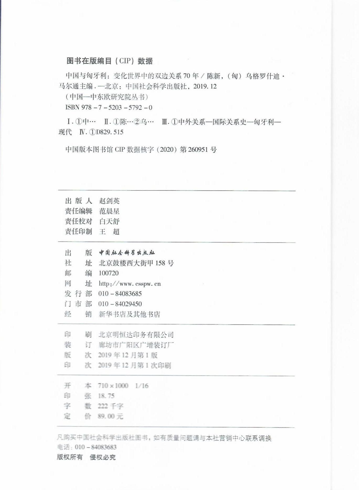 陈新、乌格罗什迪•马尔通 中国与匈牙利:变化世界中的双边关系70年